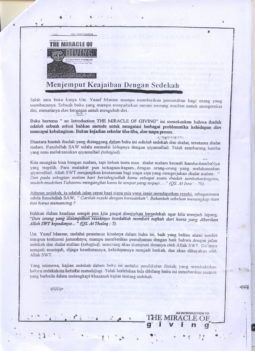 Program investasi sedekah ustad yusuf mansur! Di bongkar satu rahasia untuk menghasilkan dari internet. Dahulu saat saya nemu bundelan program investasi/ keajaiban sedekah the miracle of giving masih dalam bentuk foto kopian, sebab saat itu internet masih langka.