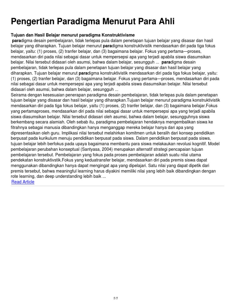 Pengertian Paradigma Menurut Para Ahli